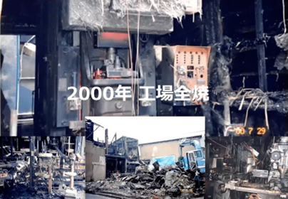 そして、追い打ちをかけるように、5年後の2000年6月30日朝10時半頃、隣家からのもらい火で、自宅兼工場が全焼。小さな町工場だが、両親が命をかけて引き継いでくれた大事な工場。周辺が17軒も焼失する大規模な火災だった。この火災で会社は壊滅的な打撃を受けた。当時の従業員は、母が亡くなった後に来てくれた5歳年下の金岡裕之氏(後の専務取締役)ただ一人。火事は昼間だったので幸い、死傷者は出なかったが、放っておけばお客様への納期遅れで迷惑をかけるのではと思い、まだ火が燃えている最中に、地元の不動産屋に飛び込み、貸し工場を探してもらった。親切な不動産屋はすぐに手配して、数時間後には大家を紹介してくれた。